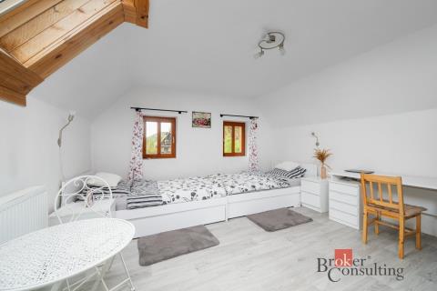 Nabízíme ke koupi rodinný dům v malebné obci Dolní Prysk, nacházející se v chráněné krajinné oblasti CHKO Lužické hory. Tento dům je ideální volbou pro milovníky přírody, klidu a aktivního odpočinku. V těsné blízkosti se rozprostírá také Národní park České Švýcarsko, který nabízí nepřeberné množství turistických a cyklistických tras, skalních měst a vyhlídek. V přízemí se nachází středová chodba s dřevěným schodištěm do patra. Na levé straně je prostorná kuchyň, za kterou je umístěna koupelna s WC. Na pravé straně najdete obývací pokoj. V prvním patře jsou dvě samostatné místnosti, které odděluje středová chodba. Dům je vytápěn novým kotlem na pevná paliva, teplo je rozváděno radiátory do všech místností. Pro temperování v přechodných obdobích jsou ve vstupní chodbě instalována krbová kamna. Nemovitost se prodává včetně veškerého nábytku a spotřebičů, což vám umožní začít okamžitě bydlet bez nutnosti dalších investic. Je vhodná k trvalému bydlení i rekreačnímu využití v krásném a klidném prostředí.