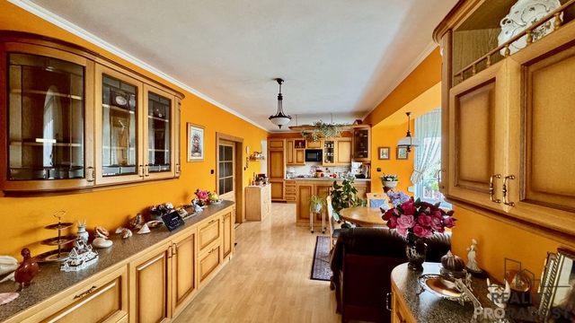 Nabízíme rodinný dům 5+kk s užitnou plochou 226 m² na rohovém pozemku o velikosti 1 261 m² v obci Psáry. Díky umístění na konci klidné ulice nabízí dostatek soukromí i ideální prostředí pro rodinný život. Dispozice domu zahrnuje čtyři ložnice, dvě koupelny a dvě toalety. Prostorný obývací pokoj s krbem je propojen s plně vybavenou kuchyní. Součástí je také samostatná pracovna vhodná pro domácí kancelář. Nechybí technické a úložné prostory ani dva balkony. K dispozici je i velká uzavřená garáž. Dům je vybaven novým kondenzačním plynovým kotlem a bojlerem, centrálním vysavačem a venkovními žaluziemi. Na udržované zahradě najdete krytý bazén, zahradní domek na náčiní, studnu napojenou na domácí vodovod a také stylový rybník s lekníny, který celému prostoru dodává jedinečnou atmosféru. Obec Psáry poskytuje kompletní občanskou vybavenost – školu, školku, poštu, lékárnu, restaurace i obchody. Do Prahy se snadno dostanete autem i autobusem, přímá linka na metro C – Budějovická je vzdálena jen 5 minut chůze. Nemovitost je možné financovat hypotečním úvěrem, s jehož vyřízením vám rádi bezplatně pomůžeme.