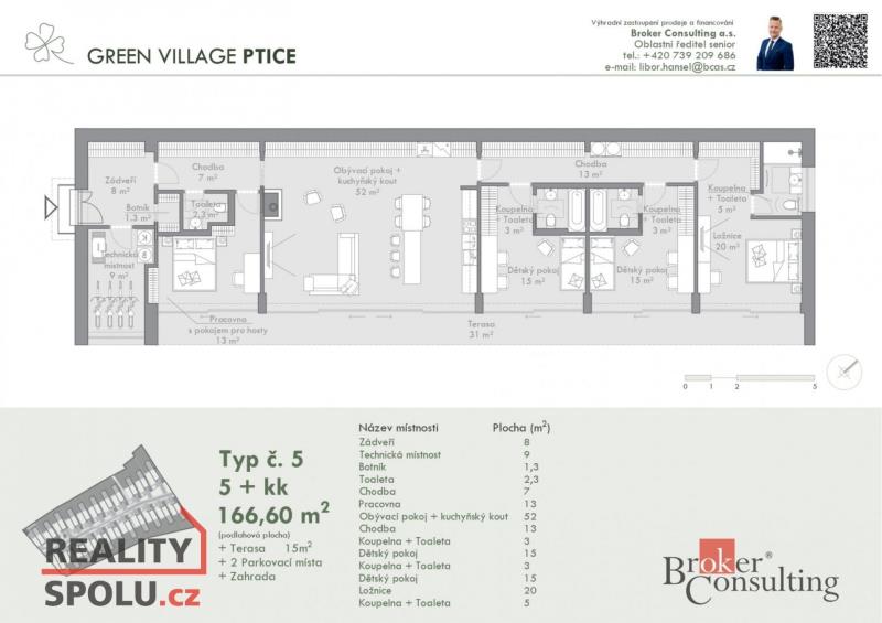 Nabízíme k prodeji rodinný dům v rámci nového developerského projektu v malebné obci Ptice, která nabízí klidné bydlení v přírodě a zároveň velmi dobrou dostupnost do Prahy a okolních měst. Fáze projektu: ve výstavbě, dokončení první etapy plánováno na srpen 2026 Zahrada a parkování: Dům má vlastní zahradu a parkovací stání, ideální pro rodiny s dětmi nebo domácí mazlíčky Technické vybavení: napojení na inženýrské sítě (elektřina, pitná voda, kanalizace), vytápění elektrickými rohožemi, v každé místnosti je klimatizace rekuperace a dům je vybaven fotovoltaikou, dešťové vody likvidovány na pozemku Komplex a služby v okolí: projekt bude součástí uzavřeného komplexu s polyfunkčním domem obsahujícím kavárnu, sportovní obchod a potraviny Lokalita: Obec Ptice je známá svou příjemnou atmosférou, čistým prostředím a množstvím zeleně. V okolí najdete cyklostezky, lesy a možnosti pro volnočasové aktivity. Díky výborné dopravní dostupnosti do Prahy (vlakem i autem) je ideální pro ty, kteří chtějí spojit klidný život mimo ruch města s rychlým spojením do centra Prahy. Součástí našich služeb je vyřešení nejvýhodnější formy financování s výběrem z nabídky celého trhu. Pro více informací nebo domluvení prohlídky nás kontaktujte.