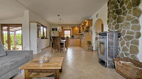 Obývací pokoj: 18,7 m² – s krbovými kamny a přímým vstupem na terasu