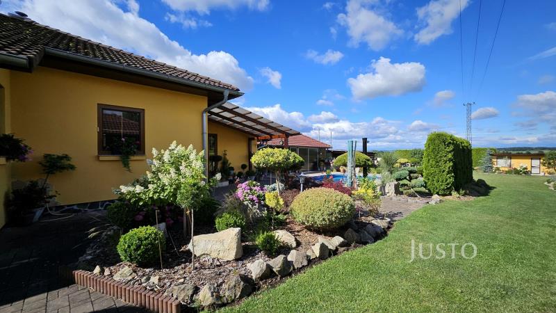 Pozemek je s dostatkem soukromí a naprosto dokonalou zahradní údržbou.
