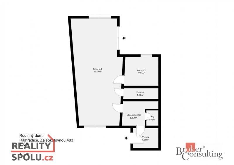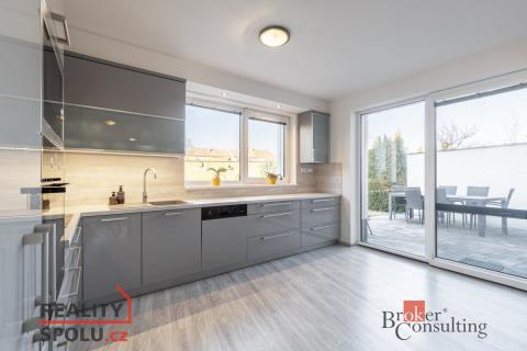 Rodinný dům 5+kk s terasou a zahradou, 120 m², Rajhradice – úsporné bydlení kousek od Brna Nabízíme k prodeji moderní a velmi prakticky řešený rodinný dům o dispozici 5+kk s užitnou plochou 120 m², situovaný na pozemku o celkové výměře 232 m², v klidné a vyhledávané obci Rajhradice, jen několik minut od Brna. Tato nemovitost představuje ideální volbu pro rodinu, která hledá komfortní, úsporné a klidné bydlení s vlastním venkovním prostorem a výbornou dostupností do města. Srdcem domu je prostorný obývací pokoj s kuchyňským koutem, kde jsou umístěna kachlová kamna, která vytvářejí příjemnou atmosféru a slouží jako doplňkový zdroj tepla. Hlavním zdrojem vytápění je plynový kotel s podlahovým topením, který zajišťuje rovnoměrné teplo v celém domě a vysoký komfort bydlení. Na obytnou část navazuje vlastní terasa se zahradou, ideální pro relaxaci, rodinné posezení i bezpečné místo pro dětské hry. K domu náleží dvě parkovací místa přímo před domem a samostatný venkovní úložný prostor umístěný před domem, vhodný pro kola, kočárky či sportovní vybavení. Velkou přidanou hodnotou je i okolí nemovitosti – přímo před domem se nachází dětské hřiště a workoutové hřiště, což podtrhuje rodinný a komunitní charakter celé lokality. Dům má energetický štítek PENB třídy B (velmi úsporná) a měsíční provozní náklady do 6.000 Kč, díky čemuž nabízí ekonomicky velmi efektivní provoz. Hlavní výhody nemovitosti: • dispozice 5+kk • užitná plocha 120 m² • pozemek 232 m² • terasa a soukromá zahrada • 2 parkovací místa před domem • venkovní úložný prostor • plynový kotel + podlahové topení • kachlová kamna v obývacím pokoji • PENB třída B • provozní náklady do 5.000 Kč • dětské a workoutové hřiště přímo před domem • klidná lokalita s výbornou dostupností do Brna Rajhradice patří mezi velmi žádané lokality díky kombinaci klidného bydlení, dobré občanské vybavenosti a rychlé dostupnosti do Brna. S financováním koupě Vám rádi pomůžeme. V případě zájmu o další informace nebo sjednání osobní prohlídky neváhejte kontaktovat realitního makléře.