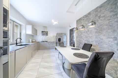 Samostatná kuchyň je plně vybavená a stejně tak i ostatní místnosti – veškerý nábytek je součástí prodeje, takže můžete bydlet bez dalších investic.