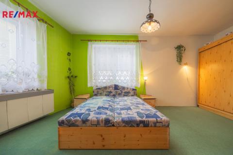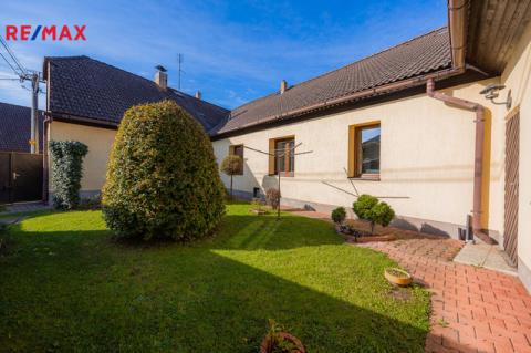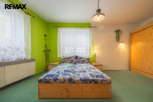 Dům prošel rekonstrukcí ve více etapách — má novou střechu, plastová okna a obytná část je zateplena.