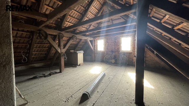 půdní pokoj (garsonka), který lze využít jako ateliér, hernu nebo soukromou pracovnu, případně upravit pro další bydlení.