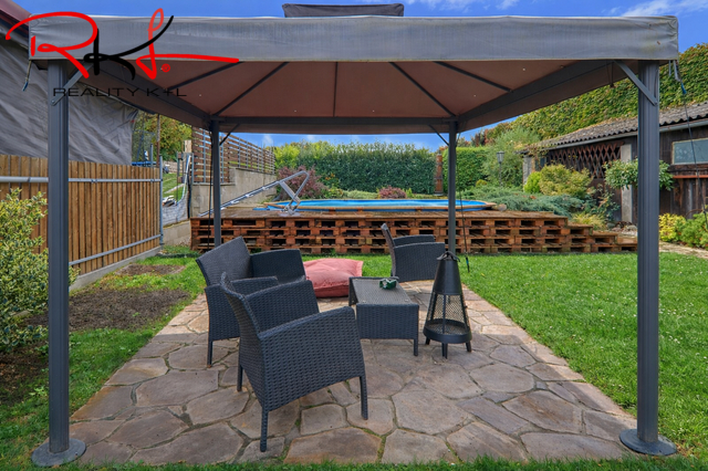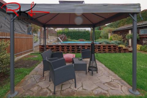 • na pozemku kolna, skleník, venkovní krytá kuchyně, bazén, pergola, okrasné traviny a dřeviny