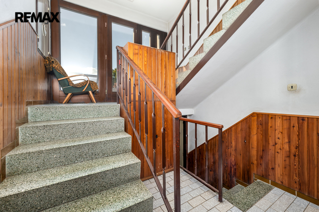 Nabízíme k prodeji zděný rodinný dům v klidné, rezidenční části obce Rudolfov, v ulici Na Výhledu. Součástí pozemku o celkové výměře 995 m2 je třípodlažní dům, postavený v r. 1975, o zastavěné ploše 130 m2, který disponuje užitnou plochou 280 m2. Dům je připraven k modernizaci. Obytná část je členěna do třech podlaží: Suterén s užitnou plochou 89 m2 slouží jako technické zázemí domu. Je zde k dispozici prostorná dvougaráž, prádelna se sušárnou, sklepní prostory a kotelna. V 1. NP je hlavní vstup do obytné části s centrální chodbou, ze které je pak přístup do dvou samostatných bytů v 1.NP a 2.NP. Oba byty jsou identické s podlahovou plochou 89,4 m2 a řešené jako 4+1: vstupní hala, prostorný obývací pokoj, kuchyně s jídelním koutem a spíží, koupelna s vanou, WC a tři obytné pokoje. Součástí každého bytu jsou dva balkony přístupné z obývacích pokojů a jedné ložnice. Dispoziční řešení všech podlaží s rozměry jednotlivých místností najdete na přiložených orientačních půdorysech. Objekt je ve velmi zachovalém stavu, postaven z pálené cihly tl. 33 cm, v průběhu let byly provedeny částečně rekonstrukce a úpravy: v obytných podlažích měněná dřevěná eurookna (10 let), kvalitní střešní krytina PVC se 60ti letou zárukou. Byt ve 2. NP prošel před lety částečnou rekonstrukcí a modernizací. Členitá, oplocená zahrada je z části osázená množstvím okrasných dřevin, díky nimž je na celém pozemku příjemné soukromí, z části sloužila jako užitková s připravenými záhony. Součástí je vybetonovaný bazén s funkční technologií a dále zahradní domek s krbem a udírnou. Objekt je napojený na obecní přípojku vody a kanalizace. Vytápění celého domu je řešené plynovým kotlem s rozvody do radiátorů, druhým zdrojem tepla je kotel na pevná paliva. Ohřev vody je řešený plynovým bojlerem. Dispozice domu umožňuje pohodlné bydlení pro vícegenerační rodinu, případně kombinaci vlastního bydlení s investičním využitím. Díky samostatnému přístupu do jednotlivých podlaží je možné jedno z pater využívat k pronájmu, jak tomu bylo i doposud a získat tak pravidelný doplňkový příjem. Dům tak nabízí nejen dostatek prostoru pro rodinné bydlení, ale i zajímavý potenciál z hlediska investice. Klidná rezidenční lokalita Rudolfova poskytuje příjemné bydlení s dobrou dostupností do Českých Budějovic a veškerou základní občanskou vybaveností v dosahu. Nemovitost představuje ideální příležitost pro ty, kteří hledají prostorný rodinný dům s možností úprav dle vlastních představ a s potenciálem dlouhodobého využití. Prodávající si vyhrazuje právo vybrat kupujícího na základě jím zvolených kritérií.