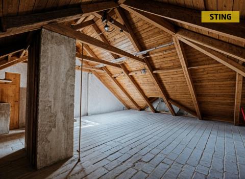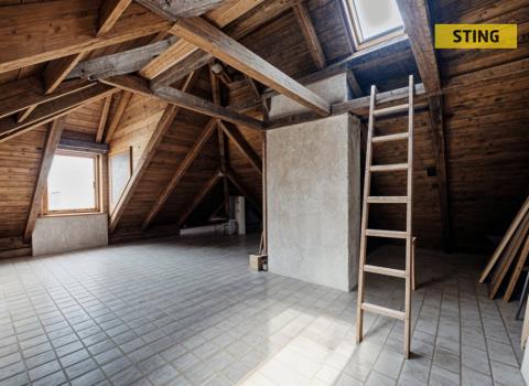 Po schodišti se dostaneme na pěknou půdu.Zde můžeme vybudovat další místnosti .
