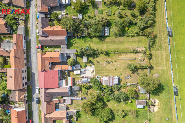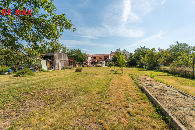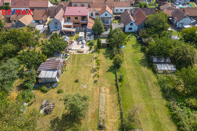 S domem dále můžete užívat zahradu, 5 kůlen s možností využití jako dílna nebo další úložné prostory (5,9 m2, 4,4 m2, 5,1 m2, 6,7 m2 a 12,1 m2), sklep 5,8 m2 a kotelnu 5,3 m2.