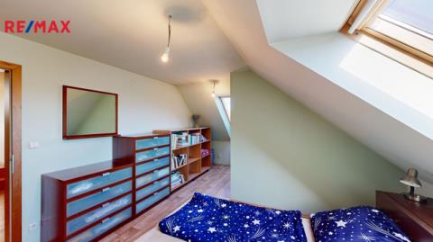 V podkroví je hotová příprava na kuchyni a koupelnu (odpady, elektřina), dům lze jednoduše předělat na dvougenerační bydlení.
