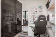 Součástí nemovitosti je také rozsáhlá samostatná a plně vybavená dílna o užitné ploše přibližně 100 m², která představuje velkou přidanou hodnotu pro podnikání, servisní činnost nebo technické hobby. Dílna je zateplená, vytápěná, má vlastní elektroměr a připojení 220/380 V, což umožňuje provoz energeticky náročnějších strojů. Je vybavena hydraulickým zvedákem, díky čemuž se výborně hodí pro autoservis nebo podobné řemeslo. Nechybí zde sociální zázemí, samostatná kancelář vhodná pro administrativu či zákaznické zázemí, dále sklad, půda na uložení materiálu a příprava na další koupelnu, což rozšiřuje možnosti budoucího využití. Před dílnou se rozkládá velká vydlážděná plocha, ideální pro parkování více vozidel, manipulaci s materiálem či skladování. Přístup je komfortní díky vysokým posuvným vratům s výškou 330 cm, která umožňují bezproblémový vjezd dodávek i větších vozidel včetně obytných aut.