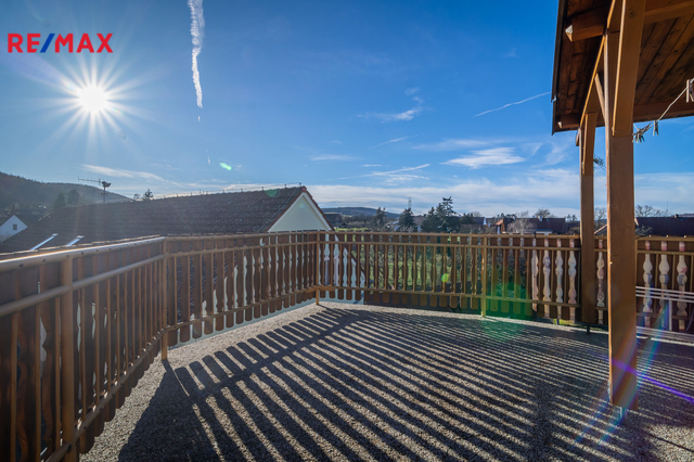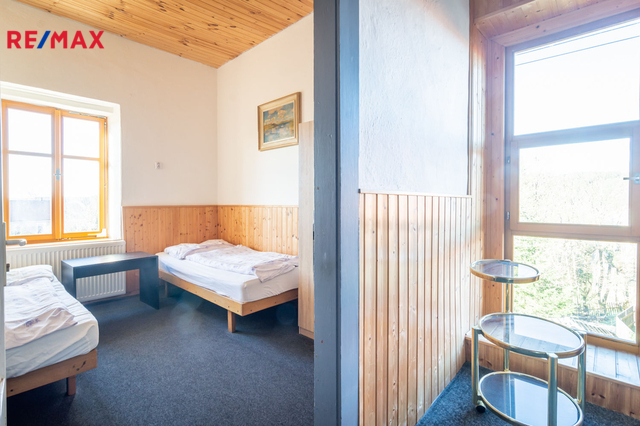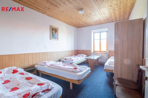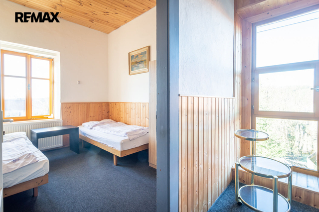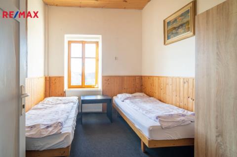 Druhé nadzemní podlaží je rozděleno na 2 části, v jedné je 8 pokojů pro ubytování hostů, venkovní terasa s pěkným výhledem do krajiny a společné sprchy a toalety na chodbě. Celková výměra části s ubytováním je 124 m² V druhé části patra je byt o dispozici 4+1, se dvěma koupelnami a zastřešenou terasou. Celková výměra bytu je 106 m² + 18 m² terasy.