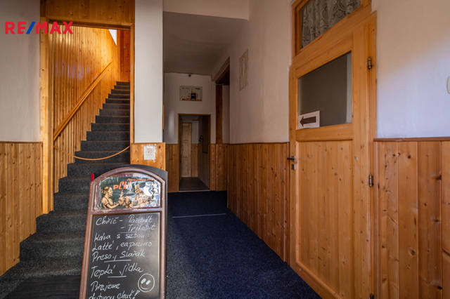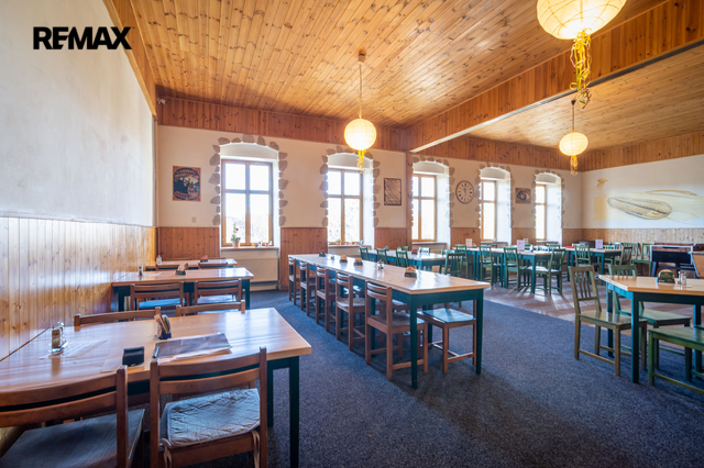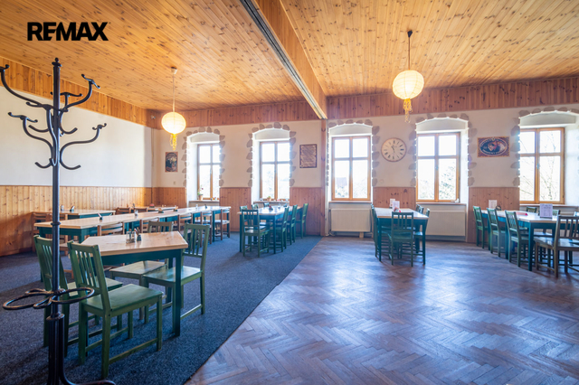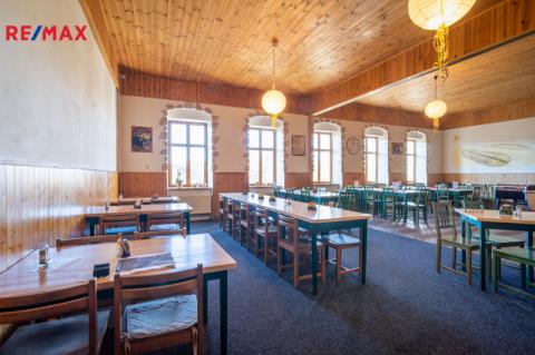 V prvním nadzemním podlaží je restaurace s kapacitou cca 80 míst, která může sloužit i jako sál pro různé akce, dále vybavená kuchyně a zázemí ke kuchyni, sklad, kancelář, toalety pro hosty atd. Součástí přízemí jsou další 2 větší místnosti, které v minulosti sloužily jako obchod, který je možné obnovit. Před restaurací je kryté venkovní posezení, s kapacitou 20 míst. Celková výměra přízemí je cca 262 m².