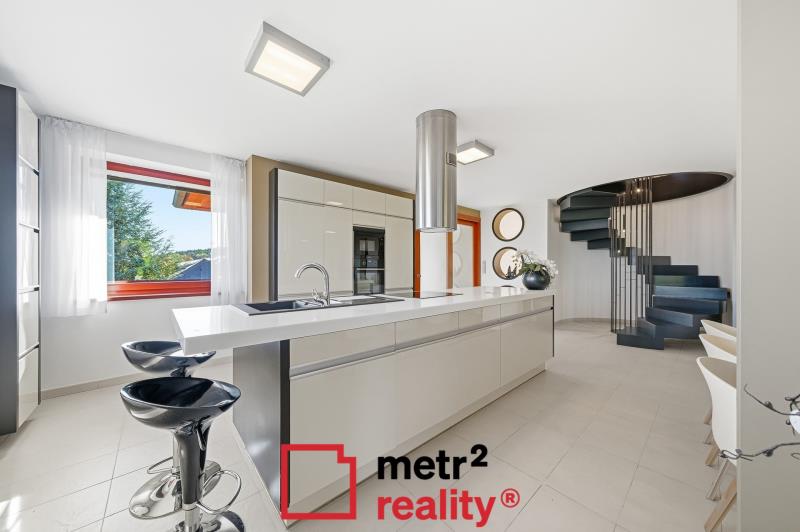 Jedinečná stavba zasazená do okrasné zahrady na okraji lesa – světlé interiéry, velkorysá dispozice a výhled, který vás každý den potěší. Originální dům s kruhovým schodištěm, velkým posuvným oknem v ložnici a přímým propojením interiéru se zahradou a okolní přírodou.