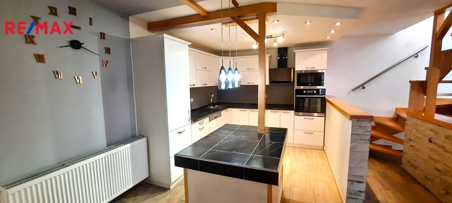 V rámci exkluzivní smlouvy nabízíme k prodeji rodinný dům ve Slavonicích okr. Jindřichův Hradec o velikosti 3 + kk s prosklenou zimní zahradou, garáží a stodolou. Dům má zastavěnou plochu cca 80 m2, obytná plocha činí cca 120 m2. Nemovitost disponuje samostatnou garáží o velikosti 30 m2, klenbovým sklepem 12 m2, uzavřeným dvorem a stodolou o výměře 75 m2, celková plocha pozemku činí 344 m2. Dispozice domu: do domu se vchází předsíní, z níž rovně se nachází samostatné WC. Z předsíně vpravo se dostaneme do kuchyně propojené s obývacím pokojem s krbovými kamny. Vedle obývacího pokoje se nachází malá jídelna a dále prosklená zimní zahrada s kamennou studnou. V patře, kam se dostaneme po krásných dřevěných schodech, se nachází další 2 pokoje, koupelna s vanou a sprchovým koutem, samostatné WC a dále a prostorná šatna a technická místnost. V roce 2017 byla provedena celková rekonstrukce domu spočívající ve výměně kompletního elektrického a vodovodního vedení, topení, oken a zateplení pláště domu. Vytápění řešeno centrálně pro celý dům krbovými kamny s teplovodním výměníkem do radiátorů, v patře a jídelně do podlahového topení. Voda využívána z veřejného vodovodního řadu a taktéž z vlastní kopané studny společné se sousedy. Odpad sveden do obecní kanalizace. Před domem je k dispozici plynová přípojka. K nemovitosti se dostaneme přes průjezd sousedů. Toto drobné omezení je ošetřeno právně v rámci věcného břemene. Slavonice jsou jedinečnou historickou a architektonickou památkou nacházející se na pomezí Čech, Moravy a Rakouska, v samém srdci České Kanady. Město disponuje kompletní občanskou vybaveností. Jen 12 km se nachází město Dačice, obec s rozšířenou působností.