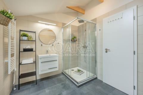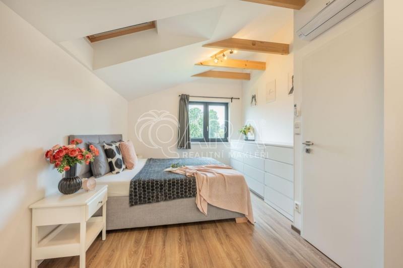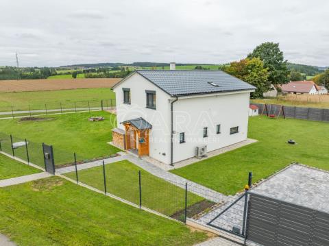Exkluzivní nabídka prodeje rodinného domu z roku 2023 ve Slověnicích. Dvoupodlažní rodinný dům o celkové ploše 136,9 m se rozkládá na pozemku o výměře 1851 m. Dům je dispozičně řešen jako 6+kk s přímo navazující terasou. Dům sestává z obývacího pokoje s kuchyňským koutem, pěti pokojů, technické místnosti, spíže, chodby, koupelny se sprchovým koutem a WC v prvním patře a koupelny s vanou, sprchovým koutem a WC ve druhém patře. Z pozemku je krásný výhled na les. Dům má vlastní vrtanou studnu, ČOV a retenční nádrž. Vytápění domu tepelným čerpadlem vzduch-vzduch je částečně podlahové (obývací pokoj s kk, koupelny) a částečně zajištěné splitovými jednotkami, sloužícími také jako klimatizační, ve dvou místnostech doplněné přímotopy. Ochranu objektu zajišťuje elektronický zabezpečovací systém a kamerový systém se záznamem. V celém domě je položena plovoucí podlaha, v koupelnách a technické místnosti je dlažba. Z obývacího pokoje je možný vstup na terasu a zahradu francouzskými okny. Vybudováno je parkovací stání pro čtyři automobily za elektrickou pojezdovou branou. Přístup do domu je z přilehlé komunikace. Zahrada je upravená a zatravněná, pozemek má pravidelný rovinatý tvar. Plná občanská vybavenost je ve 3 km vzdáleném Divišově, event. ve Vlašimi a okresním městě Benešov. Hypotéka možná, rádi zařídíme.