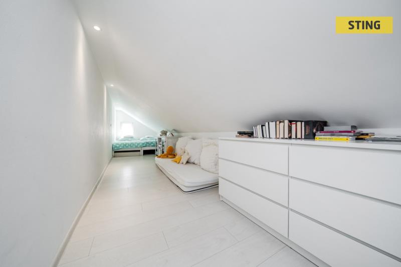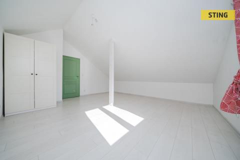 2. NP: Schodištěm (3,56 m2) vystoupáme do prostorné chodby čtvercového půdorysu (8,64 m2), z níž je vstup do šatny (6,20 m2), nad níž zaplesá srdce každé ženy, druhými dveřmi se dostaneme do slunného podkrovního dětského pokoje o výměře (18,80 m2) a třetími pak do pokoje pro hosty o výměře (14,40 m2).