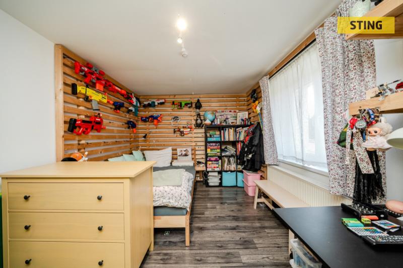 Dispozice: 1. NP: Po průchodu kouzelnou, dřevěnou verandou se dostaneme do zádveří (7,45 m2) domu s odkládací stěnou na míru, v oblíbeném provance stylu. Nalevo se nachází koupelna s vanou + sprchovacím koutem + WC (6,04 m2). Napravo pak komora (1,88 m2) a schodiště do patra z chodby (6,90 m2). Na konci chodby se nachází vstup do kuchyně s jídelním prostorem (12,89 m2) a za ním dětský pokoj (15,46 m2). Dalším vstupem z chodby se dostaneme do slunného obývacího pokoje (18,35 m2), kde je možnost zřízení krbových kamen, které by dodaly romantickou atmosféru a podtrhly tak útulnost domova. Poslední místností je pak ložnice (9,05 m2), do níž se vstupuje z obývacího pokoje. Oba pokoje jsou díky velkým oknům nádherně prosvětlené a nabízí výhled na udržovanou zahradu.