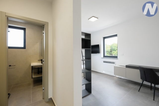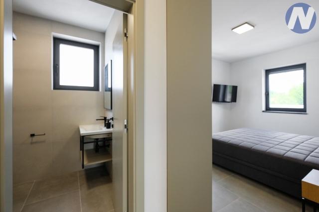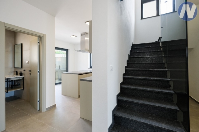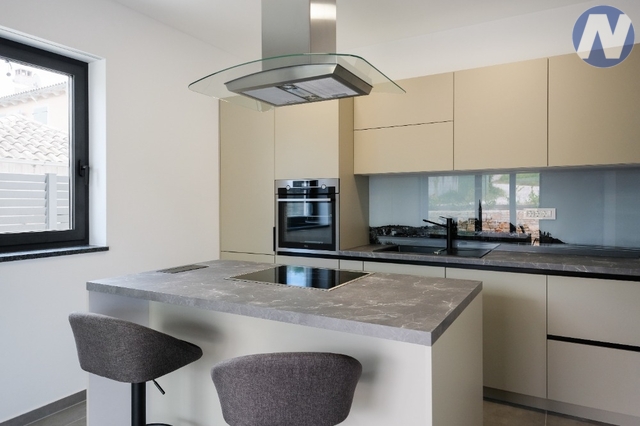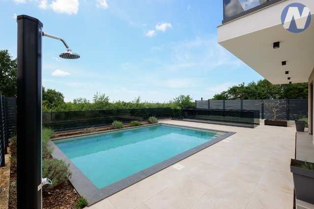 Dům se nachází v lokalitě půvabného městečka Svetvinčenat. Dům je nově postaven v moderním stavebním stylu s velkými prosklenými stěnami, kterými proniká hojné světlo. Skládá se ze vstupní haly, kuchyně, jídelny, toalety, technické místnosti, obývacího pokoje s krbem a přístupu na venkovní terasu, kde je venkovní bazén se sluneční terasou pro relaxaci a zábavu. Vnitřní schodiště zároveň spojuje 1. patro, kde jsou 4 prostorné a světlé ložnice se 4 moderními a plně vybavenými koupelnami.