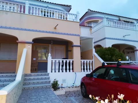 Prodej patrového řadového domu v Pinar de Campoverde, ulice Calle Albahaca. Dům je umístěn v klidném rezidenčním komplexu, kde jsou k dispozici dva společné bazény. V I.NP je umístěn obývací pokoj s kuchyňským koutem a jídelnou, samostatné WC a vstup na dvě terasy. Ve 2.NP jsou dvě ložnice, koupelna s vanou a WC a vstup na balkón. Dále má dům předzahrádku před domem, kde je parkovací stání pro jedno vozidlo a zpevněná plocha s novou dlažbou, další plocha je za domem, kde je umístěno společné sezení. Dům je kompletně vybaven a zařízen převážně novým vybavením. Dům má dvě tepelná čerpadla, respektive klimatizace s možností vytápění je napojen na elektřinu, vodu a kanalizaci. Veškeré měsíční náklady na provoz ve výši cca 100€. V blízkém okolí se nacházejí krásné pláže a proslulá solná jezera s léčivými účinky, Letiště je vzdáleno 80 km, pláže a jezero cca 5km, veškerá občanská vybavenost v místě. V ceně nemovitosti je započten osobní automobil Škoda Fabia Combi r.v.2016, který slouží především pro přepravu na letiště, nákupy apod., a je pro toto vozidlo rovněž zajištěno stálé parkovací místo u letiště( cena 23€/ měs.) Veškeré administrativní záležitosti Vám pomůžeme vyřídit. Samozřejmě vám také zajistíme přepravu z letiště a zpět. Nemovitost je díky stálému a teplému počasí vhodná pro celoroční pobyt, nebo pro strávení dovolené. Doporučujeme .