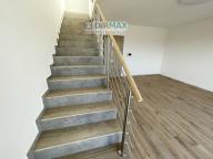 Po betonové schodišti se zábradlím a dlažebními stupnicemi se jde do 1. patra. Na konci schodiště je zábrana proti pádu, zejména ochrana pro děti nebo starší osoby. V patře je místnost pro kuchyni s jídelnou. Jsou kompletně připravené rozvody včetně odsavače par na kostru domu. V celém patře je dlažba a podlahové vytápění.