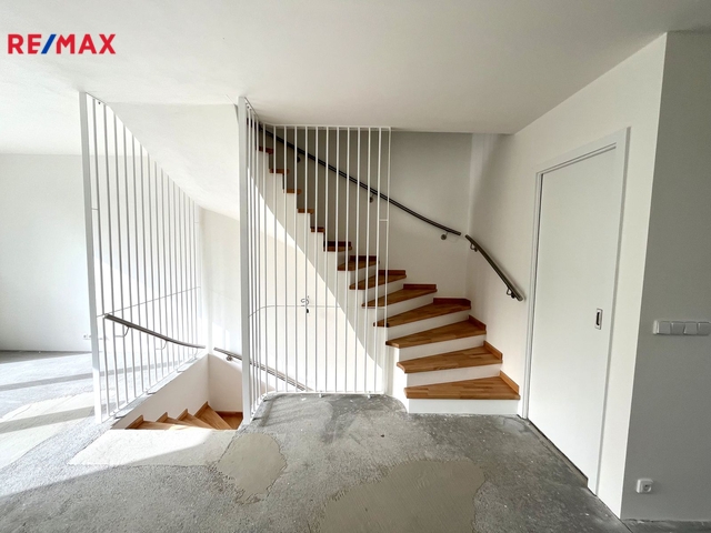 Exkluzivně nabízíme k prodeji řadový dům č.2. Projekt zahrnuje 8 unikátních rodinných řadových domů, realizovaných ve dvou blocích, po čtyřech domech. Nyní vám představíme řadový dům č.2, který je jiz zkolaudovaný a má tudíž číslo popisné. Dispozičně dům nabízí 3.NP, celá jeho plocha je podsklepena, kde je možnost parkování dvou automobilů za sebou, technickou část, kde je umístěná veškerá technologie pro obslužnost domu a elektricky ovládaná pojezdová vrata. Vstupní zádveří s chodbou navazující na schodiště do 1.NP. , kde se nachází obývací pokoj, ze kterého je východ na venkovní terasu, dále je obývací pokoj propojen do prostoru kuchyně. Vedle kuchyně je k dispozici praktická spíž pro uložení potravin. V tomto podlaží se nachází i samostatné WC a komora s umyvadlem. Ve 2.NP jsou dále dva samostatné pokoje, koupelna s vanou, umyvadlem a WC.