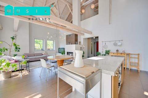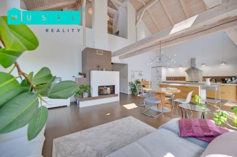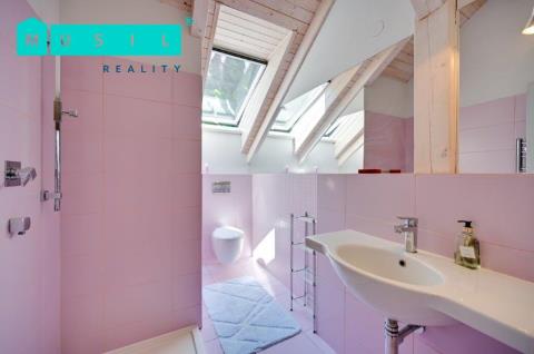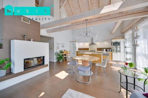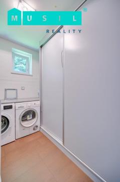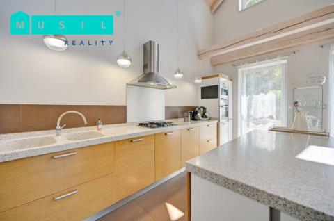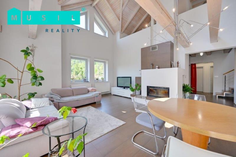 Chtěli byste bydlet v moderním domě, v klidné lokalitě u lesa, ale zároveň ve městě? Pak je tato nabídka určena právě vám. Nabízíme k prodeji luxusní rodinný dům s velkou a udržovanou zahradou ve Šternberku. Dům se nachází na konci slepé ulice Za Humny ve Šternberku, a to ve velmi klidné lokalitě na hraně lesa, do kterého je možno vstoupit přímo ze zahrady. Na udržované zahradě se nachází zahradní domek s krytým parkovacím stáním, jezírko s rybami a bazén se zastřešením a se slanou vodou. Dům je zděná novostavba s izolační fasádou, kolaudovaná před 16 lety. Celková výměra pozemku činí 1.865 m2. Dům je dispozičně řešen jako jednoposchoďový s dispozicí 5+kk o celkové obytné ploše cca 177 m2. V přízemí se nachází vstupní chodba se zabudovanými skříněmi, první koupelna se sprchovým koutem a vanou, samostatné WC, dvě ložnice, technická místnost s pračkou a sušičkou a komora. Hlavní část přízemí domu zabírá velkoryse řešený obývací pokoj (cca 50 m2) s otevřeným stropem a krbem. Z krásně prosvětleného obývacího pokoje je přímý vstup na terasu, u které se nachází zahradní jezírko s rybami. Dále je zde kuchyňský kout s kvalitní kuchyňskou linkou s kameninovou pracovní deskou a značkovými spotřebiči. Do patra se vstupuje po dřevěném schodišti. Vystoupáte do galerie, z které je výhled do obývacího pokoje pod vámi. V patře se nacházejí dva pokoje a druhá koupelna se sprchovým koutem a WC. Kolem celého domu se rozprostírá udržovaná zahrada. Bazén není v současnosti funkční, je potřeba vyměnit poškozenou fólii. Nemovitost je ve velmi dobrém, obyvatelném stavu. Celkové pojetí domu je nadčasové a splňuje současné nároky na moderní a luxusní bydlení. Ideální nemovitost pro náročnějšího zájemce. Zejména umístění domu a lokalita je exkluzivní. Doporučujeme prohlídku. Cena: 17.900.000,-Kč