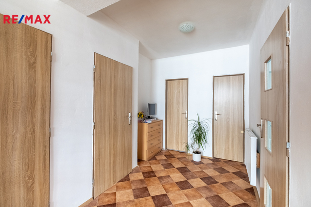 Dům nabízí praktickou a prostornou dispozici. V přízemí se nachází kuchyň, obytný pokoj, velká technická místnost, šatna, koupelna, samostatné WC a přímý vstup do garáže. V horním patře jsou k dispozici tři pokoje, další kuchyň, koupelna a samostatné WC. Součástí nemovitosti je rovněž samostatná vedlejší stavba se dvěma dílnami, které lze využít jako skladové prostory, případně pro podnikatelské či hobby účely.