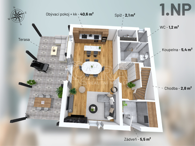 ✅ NOVĚ V NABÍDCE: 4+kk 121 m² se samostatným vstupem Hledáte moderní domov obklopený zelení, přesto v dojezdové vzdálenosti do města? Ve Struhařově u Benešova nabízíme krásnou obytnou část domu o dispozici 4+kk (121 m²) s velkorysou terasou, fantastickým výhledem a špičkovými technologiemi. DŮM, KDE BUDE RADOST ŽÍT Co kupujete: ✅ Obytná část 4+kk – 121 m² ✅ Velká terasa 45 m² s panoramatickým výhledem ✅ Půda cca 30 m² – skvělé úložné prostory ✅ Část zahrady 580 m² náležející k této jednotce (budoucím prohlášením vlastníka). KOMFORT & VYBAVENÍ: ✅ Dvě plnohodnotné koupelny – sprcha i vana ✅ Spíž u kuchyně – praktický pomocník každý den ✅ Dubové schodiště s podsvícením – detail, který potěší ✅ Elektrické žaluzie – pohodlí i bezpečí ✅ Kompletně oplocený pozemek (po oddělení) – klid a soukromí ✅ Akumulační jímka na dešťovku – úsporné a ekologické řešení Moderní a úsporné bydlení bez starostí. Vytápění: ✅ Elektrické podlahové – minimální údržba, komfortní zónové řízení teplot, žádné drahé servisy kotlů či čerpadel. LOKALITA, KTERÁ MÁ DUŠI ✅ Struhařov – obec s přátelskou atmosférou, obchodem, restaurací i sportovištěm. ✅ V okolí rybníky, lesy, vycházkové trasy i cyklostezky. ✅ Benešov – 5 minut autem ✅ Praha – cca 40 km Rádi pomůžeme s dokončením zahrady, nebo interiérem. Pozn.: Garáž a navazující část pozemku se oddělí a nebudou součástí prodeje - jedná se o samostatnou jednotku a lze ji dokoupit. Perfektní místo, kde se spojuje klid přírody s pohodlným životem. Stačí přijet, otevřít dveře a začít psát svůj nový příběh. Výhledy, které vás chytí za srdce, se musí zažít osobně. ✅ Zavolejte si o technický popis stavby nebo si rovnou domluvte prohlídku.