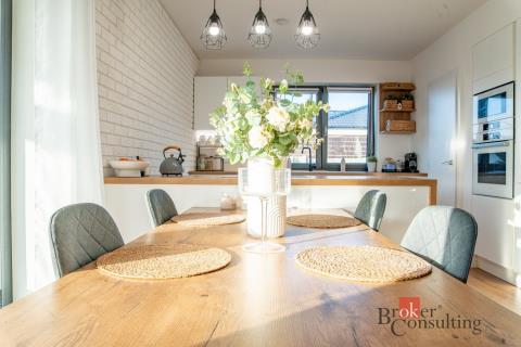 Nabízíme k prodeji moderní rodinný dům o dispozici 4+kk, situovaný v klidné části obce Okořín. Dům byl zkolaudován v roce 2019 a nabízí komfortní bydlení s podlahovou plochou 107 m² na krásném, udržovaném pozemku o velikosti 911 m². Nemovitost je ideální volbou pro rodinné bydlení, a to jak díky své dispozici, tak i příjemnému okolí s dobrou dostupností do Chomutova. Velkou dominantou domu je prostorný obývací pokoj s kuchyňským koutem a praktickou spíží, který tvoří srdce celého domu a nabízí dostatek prostoru pro společné chvíle s rodinou. Dále zde najdete ložnici a dva samostatné dětské pokoje, plně vybavenou koupelnu a technickou místnost s druhým WC. Interiér působí moderním a vzdušným dojmem a zůstává částečně vybavený, což novým majitelům usnadní nastěhování. Velkým benefitem této nemovitosti je pečlivě upravená zahrada, která nabízí naprosté soukromí a prostor pro relaxaci. Nachází se zde okrasné jezírko, vzrostlé stromy, květiny, trávník, menší sad i dekorativní prvky z kamene, které společně vytváří harmonické a velmi příjemné prostředí. Součástí zahrady je také pergola ideální pro posezení s rodinou či přáteli a praktický zahradní domek, který lze využít jako garáž nebo kůlnu. Tato nemovitost představuje skvělou kombinaci moderního bydlení, klidu venkova a dostupnosti města. V případě zájmu vám rádi zajistíme kompletní servis včetně výhodného financování prostřednictvím našeho hypotečního specialisty.
