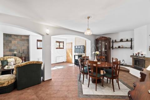 Pozemek o rozloze 1748 m obklopený lesem je víc než jen místo k posezení. Bazén, vířivka, pergola, venkovní krb s posezením, malé dětské hřiště, a pokud vám nestačí téměř čtyřicetimetrová uzavřená dvougaráž, protože máte trochu větší vozový park nebo třeba karavan, vejdete se na pozemek pohodlně i s vašimi dalšími motorovými mazlíčky. Všechno tu má svoje místo.