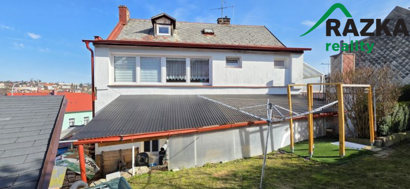 Dovoluji si Vám nabídnout ke koupi dvougenerační rodinný dům v Tachově, ul. Na Stráni, situovaný na pozemku o celkové výměře 845 m². Součástí nemovitosti jsou dvě bytové jednotky, dvě garáže, skleník a zahrada, která poskytuje dostatek prostoru pro relaxaci i zahradničení. Dům představuje ideální řešení pro vícegenerační bydlení, kombinaci vlastního bydlení a pronájmu nebo podnikání z domova. Dispozice domu: Suterén – dům je částečně podsklepen, nachází se zde technické zázemí 1. nadzemní podlaží – bytová jednotka o velikosti 2+1 s koupelnou a WC 2. nadzemní podlaží – bytová jednotka o velikosti 3+1 s vlastní koupelnou a samostatným WC; v půdním prostoru je vybudován třetí pokoj, čímž dochází k praktickému rozšíření dispozice. Půdní prostor lze rekonstrukcí také využít k bydlení. Technické informace: - plastová okna, původní střešní krytina - napojení na veřejný vodovod, kanalizaci, elektřinu i plyn - vytápění automatickým kotlem s násypkou na tuhá paliva - ohřev vody zajišťuje plynový kotel, plynový kotel lze také v případě potřeby využít na topeni. - možnost vytápění přízemní jednotky krbovými kamny - dům prošel částečnou rekonstrukcí Zastavěná plocha domu činí 487 m², zahrada má přibližně 680 m². Nemovitost nabízí zajímavý potenciál dalšího využití a představuje stabilní investici do rodinného bydlení. Koupi domu lze řešit hypotečním úvěrem, který Vám rádi vyřídíme.