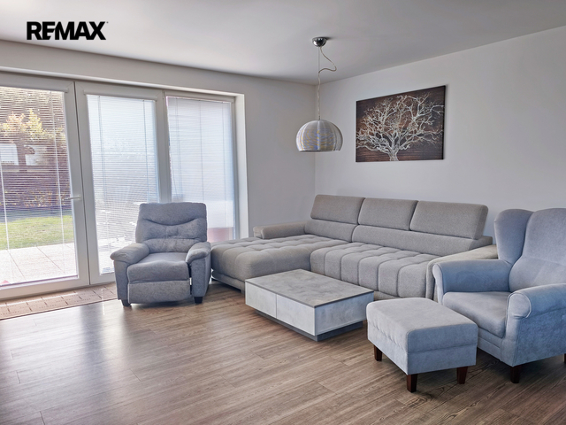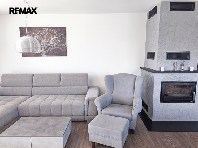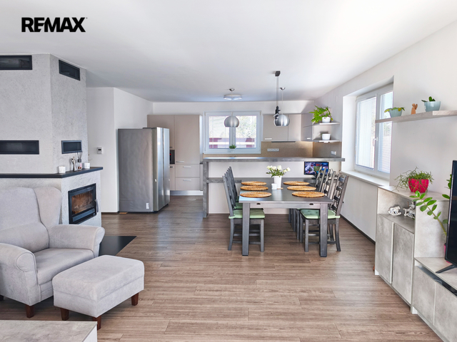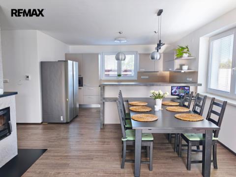 Rodinný dům o dispozici 4+kk a užitné ploše 108 m² nabízí vstupní chodbu, chodbu, prostornou samostatnou šatnu, toaletu (s umyvadlem, elektrokotlem, bojlerem a místem na pračku a sušičku) a koupelnu. Koupelna praktická, maximálně prosvětlená a nabízí dostatek místa pro odpočinek i úložné prostory, plně vybavena vanou, sprchovým koutem, umyvadlem a toaletou. V domě naleznete tři samostatné neprůchozí ložnice. Dominantou nemovitosti je obývací pokoj s krbovou vložkou, s kuchyňským a jídelním koutem. Kuchyně je vybavena vestavěnými spotřebiči včetně myčky, varné desky, elektrické a mikrovlnné trouby. Obývací pokoj s jídelním a kuchyňským koutem tvoří jeden otevřený prostor, kde jednotlivé zóny plynule navazují a celek působí prostorně a vzdušně. Celý interiér je laděn v moderních tónech, které podporují pocit tepla. Z obývacího pokoje naleznete vstup na terasu a zahradu.