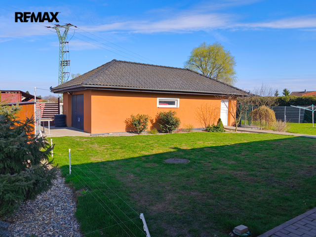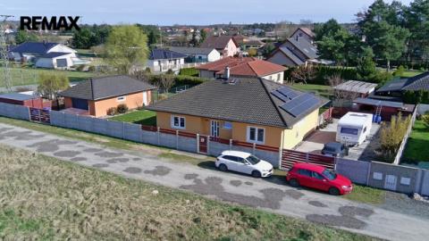 Součástí prodeje je také samostatná garáž s vlastním špajzem, terasa u domu, zahrada, parkovací stání pro více aut, kopaná studna (cca 8,5 m), čistička odpadních vod zn. Hellstein, oplocení, branka a 2x vjezdová brána. Nemovitost je vytápěna elektrokotlem zn. Protherm (nový cca 2 roky) a krbovou vložkou s výměníkem. Podlahové vytápění a v ložnicích radiátory jsou napojeny jak na elektrokotel tak i na krb. Ohřev vody bojler 125l, zn. Dražice. V r. 2024 instalována fotovoltaika, solární panely 24ks na střeše domu a příslušenství včetně virtuálních baterií ve vst.chodbě. Nabíječka na elektro auto.