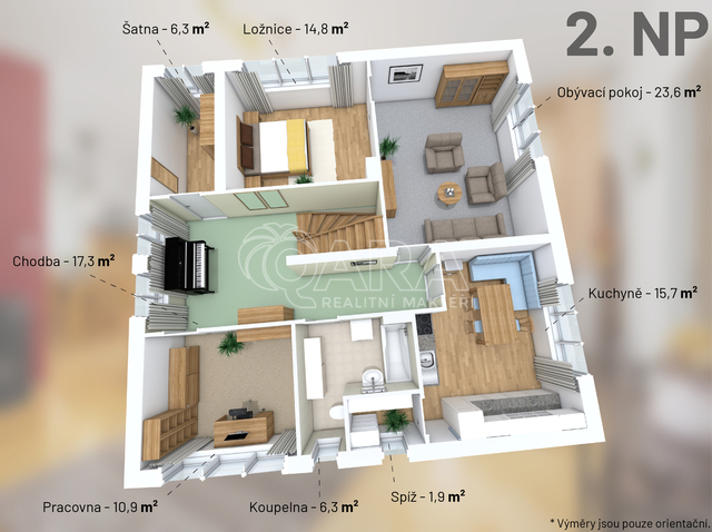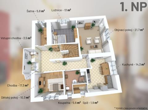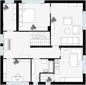 A pokud by vám současný prostor nestačil? Nevyužité podkroví nabízí další potenciál rozšíření. Do budoucna je možné zvážit i přístavbu a dům dál rozvíjet podle vlastních představ.