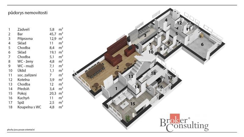 Nabízíme k prodeji víceúčelový rodinný dům, který spojuje možnost bydlení i podnikání. V přízemí domu se nachází plně funkční hospoda s kuchyní a zázemím, na kterou přímo navazuje venkovní posezení, ideální pro letní provoz. Součástí přízemí je také bytová jednotka 1+1, vhodná k bydlení či pronájmu. V 1. patře je situován prostorný byt 4+1 s terasou, který poskytuje dostatek soukromí i komfortu pro rodinné bydlení. V podkroví se nachází byt 1+kk a další dva samostatné pokoje, což otevírá další možnosti využití. Dům je částečně podsklepen a nabízí tak další úložné prostory. Na pozemku se nachází také venkovní přístavek, který lze využít jako dílnu nebo sklad zahradního náčiní a prostorná zahrada vhodná k relaxaci i dalšímu rozvoji. Nemovitost je ideální jako kombinace podnikání a bydlení nebo jako obchodní příležitost s možností přestavby na více bytových jednotek. Pokud hledáte nemovitost s variabilním využitím a budoucím potenciálem, tato nabídka stojí za pozornost. Uvedené výměry jsou orientační. V případě více zájemců bude nemovitost prodána nejlepší nabídce a majitel si vyhrazuje právo vybrat kupujícího na základě jim zvolených kritérií. Veškeré zveřejněné údaje obsažené v tomto inzerátu mají pouze informativní charakter a nejsou nabídkou ve smyslu § 1731 nebo § 1732 občanského zákoníku, ani se nejedná o veřejný příslib dle § 1733 občanského zákoníku.