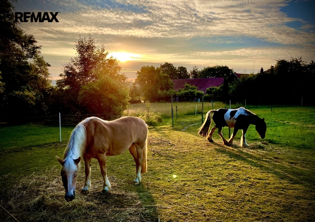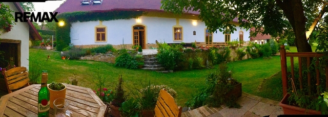 Dům má samostatnou polohu na kraji vesnice, ale není to samota. Třídílná zahrada skýtá větší množství romantických posezení, včetně altánu a dalších odpočinkových míst dle postupu denního světla, jako stvořených pro relaxaci a načerpání duševní pohody. Na části pozemku se pasou koně sousedů (věc příští domluvy).