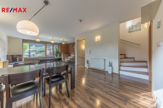 Nabízím k prodeji moderní koncový řadový dům o dispozici 4+kk v klidné a žádané rezidenční lokalitě Praha 9 – Hloubětín, v ulici Cedrová. Tento pečlivě udržovaný dům z roku 2007 s užitnou plochou 160 m² prošel v posledních letech zásadními inovacemi, včetně kompletní výměny střešní izolace (2024) a vnější revitalizace oken (2023), a nabízí tak špičkové bydlení bez nutnosti dalších okamžitých investic. K nemovitosti náleží pozemek o celkové rozloze 275 m², jehož dominantou je krásná, profesionálně udržovaná zahrada o výměře 194 m² s vířivkou, zastřešeným posezením a praktickým vlastním bočním vstupem z ulice. Dispozice domu je chytře rozdělena do tří podlaží. Srdcem domova je druhé nadzemní podlaží se světlým obývacím pokojem, moderním kuchyňským koutem a přímým vstupem rovnou na zahradní terasu (7 m²). Ve třetím podlaží se nachází klidová zóna se dvěma ložnicemi, pracovnou a vkusně zrekonstruovanou koupelnou (2024) s prostorným walk-in sprchovým koutem. Absolutní komfort zde v letních měsících zajišťuje zánovní prémiová klimatizace Daikin. Přízemí domu tvoří vstupní hala, technická místnost s místem pro pračku a sušičku a plně integrovaná garáž, na kterou navazuje další vlastní venkovní parkovací stání. Po technické stránce je dům ve vynikající kondici s prokazatelnou historií údržby. Vytápění a ohřev vody spolehlivě řeší kondenzační plynový kotel Protherm s nepřímotopným zásobníkem z roku 2021. Celý dům disponuje nadstandardní stínící technikou včetně elektrických předokenních žaluzií, vnitřních rolet a zrcadlových bezpečnostních fólií pro maximální soukromí. Průkaz energetické náročnosti budovy (PENB) se aktuálně vypracovává, proto v souladu se zákonem uvádíme prozatím třídu G. Právní stav nemovitosti je naprosto bezchybný – stávající hypoteční úvěr bude v rámci prodejního procesu současnými majiteli kompletně doplacen. Dům tak bude převeden zcela čistý, bez zástavních práv. Na míru zhotovený vestavěný nábytek je součástí kupní ceny, přičemž ohledně ponechání ostatního vybavení je možná individuální dohoda. Lokalita Hloubětína je ideální pro rodiny hledající bezpečné zázemí, přátelské sousedské vztahy a přírodu doslova za humny. Údolí meandrující řeky Rokytky a síť cyklostezek se nachází jen pár minut od domu. Zároveň nepřicházíte o městský komfort, pouhých 500 metrů od domu se nachází zastávka autobusu MHD. Vzhledem k rozsahu informací obsahuje tento inzerát pouze základní přehled a výběr fotografií. Pro více podrobností, rozsáhlou fotogalerii a 3D virtuální prohlídku prosím vyplňte kontaktní formulář níže. Obratem Vám zašlu odkaz na kompletní webové stránky nemovitosti a možné termíny osobních prohlídek. Prodávající si vyhrazuje právo vybrat kupujícího na základě jím zvolených kritérií.
