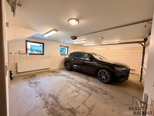 Samostatná dvougaráž v přízemí a garsoniéra s příslušenstvím (30 m²) v podkroví – ideální pro hosty nebo kancelář