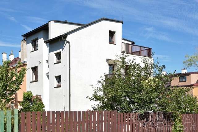 Hledáte zajímavý dům se zahradou pro bydlení nebo v kombinaci s podnikáním - nabízím k prodeji prostorný třípodlažní dům dispozice 6 + 2 s terasami, garáží a zahradou v Praze 10 - Zahradní město. Koncový uliční objekt, v letech 1993 a 1994 proběhla rekonstrukce během které se přistavělo poslední patro a realizovala se pochozí terasa (3NP). Při další rekonstrukci došlo k obnově a zateplení fasády domu, výměně původních oken za okna plastová s izolačním dvojsklem a realizovalo se nové vytápění domu. Celkově je dům v dobrém technickém stavu, ve 3NP si nový majitel dokončí úpravy podle svých představ. Zastavěná plocha objektu je rozšířila o plochu garáže v roce 1995 na nynějších 130 m2, zahrada se vzrostlou zelení poskytuje 400 m2. V 1PP jsou skladové a technické prostory celkem 27,4 m2 V 1NP jsou 2 pokoje s parketovými podlahami, samostatná místnost kuchyně, koupelna s WC (dlažba s podlahovým topením) a samostatná garáž, celkem 104,8 m2. před garáží najdeme několik parkovacích míst. V 2NP jsou 2 pokoje, samostatná místnost kuchyně a koupelna s WC, menší terasa, celkem 81,3 m2. V 3NP jsou 2 pokoje, chodba s přístupen na samostatné WC, velká terasa, celkem 71.1 m2. Vytápění objektu je zajištěno plynovým kotlem, připojen nepřímotopný stacionární ohřívač vody, v patrech ohřívače TV. Podrobné informace k výměrám i technickému stavu budou k dispozici při prohlídce. Významným plusem ke klid okolní rodinné zástavby, potřebná občanská vybavenost nedaleko, dopravní spojení a rychlý přístup na pražský okruh. Předkládanou nabídku oceníte až při prohlídce. Některé fotografie jsou vizualizace možného vybavení místností.