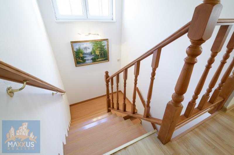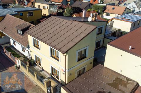 V klidné a vyhledávaném intravilánu Kbel, Praha 9, ul. Kosořická nyní nabízíme nově revitalizovaný dvoupodlažní rodinný dům s prostornou garáži, sklepem a dvorkem určený nejen pro rodinné bydlení. Revitalizací prošla krytina, kompletní interiér suterénu, štuková omítka v 1.NP, výmalba domu, sanita, výměna motoru garážových vrat. Dům prošel v minulých letech rozsáhlou stavební úpravou při které bylo vystavěno druhé nadzemní podlaží a značně rozšířená část prvního nadzemního podlaží. V celém domě elektrické bezpečnostní venkovní rolety. Dům je situovaný na rovinatém pozemku o celkové ploše 205 m2 na kterém se nachází prostorná samostatná dvojgaráž s užitnou plochou 30 m2, dvorek 89 m2 se vstupem do prostorného sklepa 28,9 m2. Komfortně řešená dispozice domu 4+1 s garáží, dvěma hygienickými zázemími a jedním technickým se odehrává v rámci dvou nadzemních podlaží a jedním podzemním o celkové ploše 192,1 m2. Skladba domu: 1.NP: vstupní chodba (7,8 m2), obývací pokoj (32,2 m2), koupelna s toaletou (5,3 m2), schodiště (7,7 m2), kuchyně s jídelnou (13,4 m2). 2.NP: dětský pokoj (10,4 m2), ložnice (21,4 m2), chodba (8,1 m2), koupelna s toaletou (5,8 m2), schodiště (7,7 m2) a dětský pokoj (13,4 m2). V rámci střechy pochozí podkroví, které je využito jako úložný prostor (66,8 m2). 1.PP: dílna (15,5 m2), kotelna (7,2 m2), komora (1,8 m2) a chodba 4,4 m2. Vytápění domu pomocí plynového kotle, ohřev vody elektrický bojler (kupovaný před 2 lety). Dům je napojen na veškeré inženýrské sítě. Kompletní projektová dokumentace k nahlédnutí v naší kanceláři. Dům lze financovat pomocí hypotečního úvěru. PENB G: průkaz energetické náročnosti nebyl zatím vyhotoven (hodnota bude aktualizována).