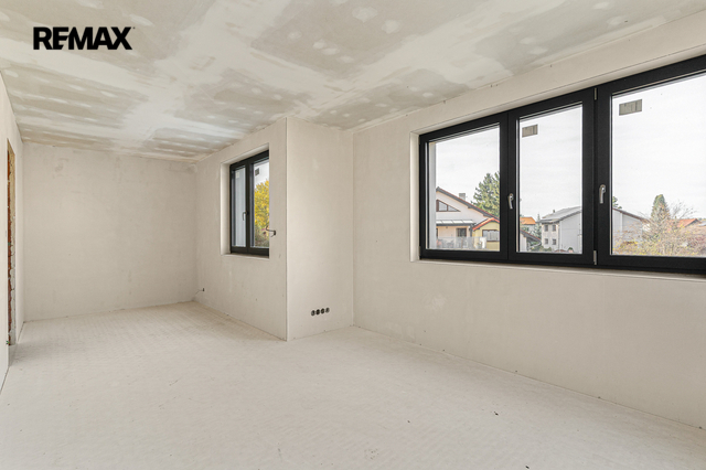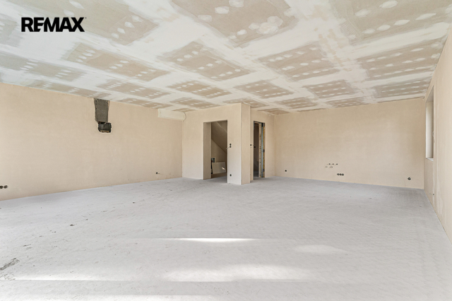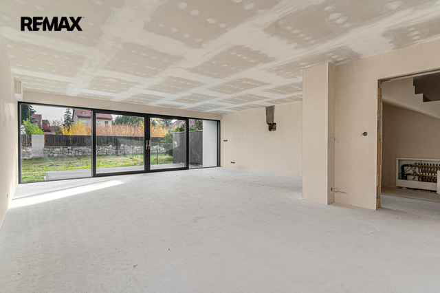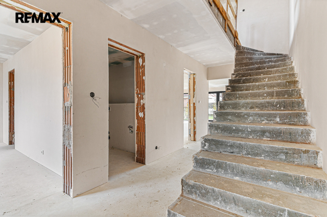 Dům je právě dokončený ve stavu shell & core – připravený k finálním úpravám přesně podle vašich představ. Už v tomto stavu ale oceníte kvalitu použitých materiálů: hliníková okna, podlahové vytápění, železobetonové stropy, strojně štukované omítky. To všechno tvoří pevný základ pro váš budoucí domov.
