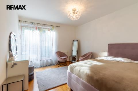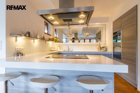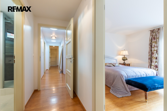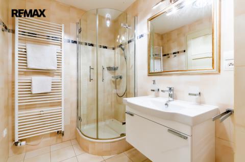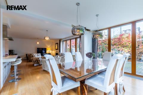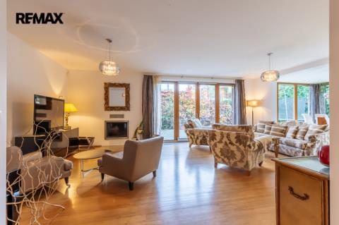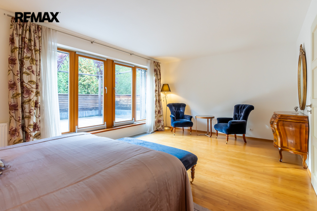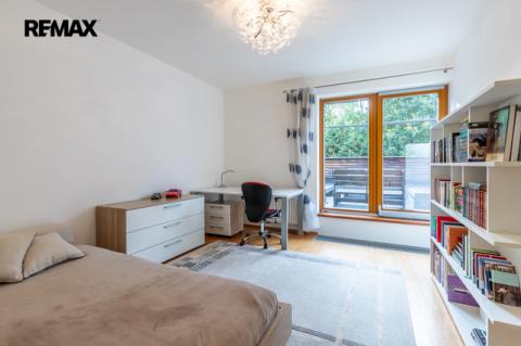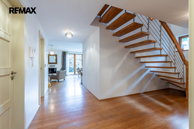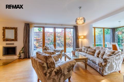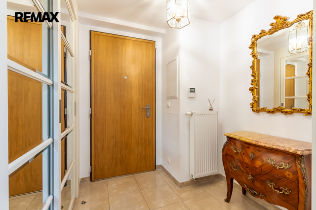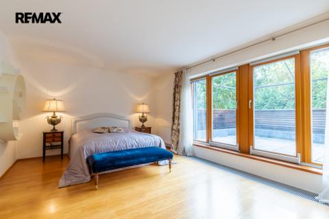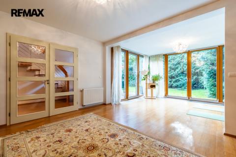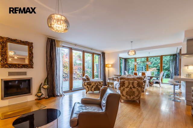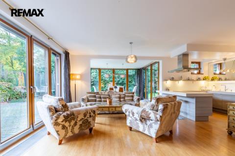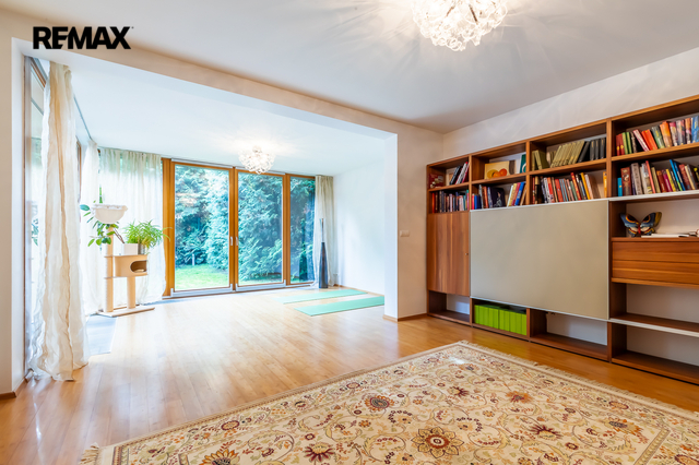 Součástí obytné části je designová kuchyň značky Poggenpohl, vybavená veškerými vestavěnými spotřebiči. Velká francouzská okna zajišťují dostatek denního světla a dodávají interiéru vzdušnost a eleganci.