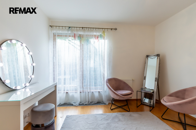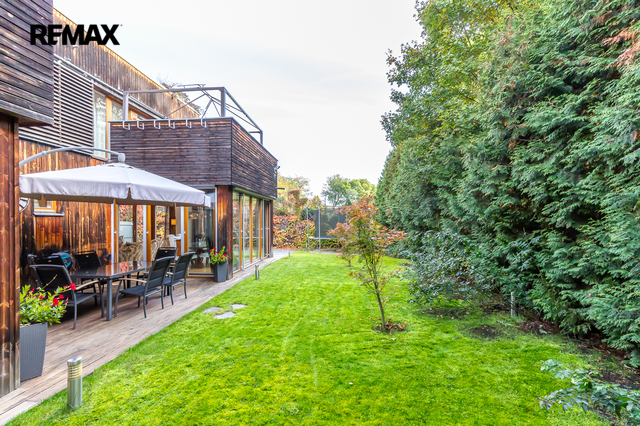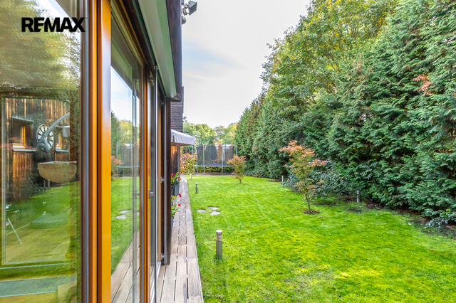 Z obou místností je přímý vstup na zahradu, kde rostou vzrostlé túje o výšce přibližně 7 metrů, které zajišťují maximální soukromí.