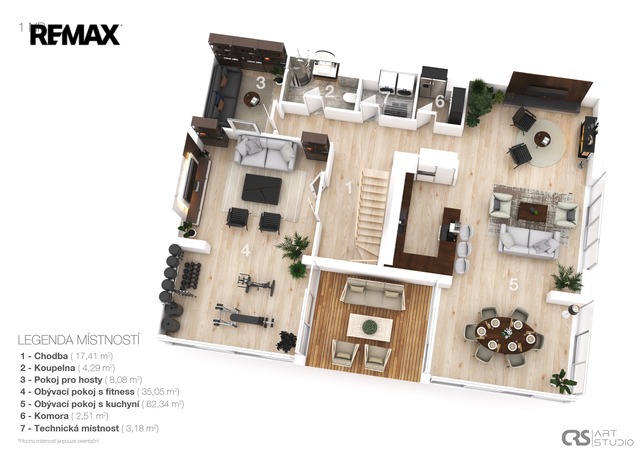 Obytná plocha tedy činí 232 m².