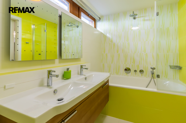 Veškerá sanita značky Villeroy & Boch je zárukou kvality a dlouhé životnosti. V celém domě jsou položeny kvalitní bambusové parkety.