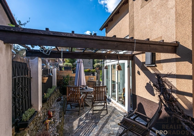 Nabízíme na prodej velký rodinný dům 5+kk, o užitné ploše 182 m2, s pozemkem 374 m2, který byl postavený v r. 1912 a před 4 roky prošel kompletní rekonstrukcí. Dům se nachází v klidné a bezpečné lokalitě, ve staré zástavbě v Praze 5 – Hlubočepy. Nemovitost je vhodná jak pro větší rodinu s několika dětmi (škola a školka jsou v docházkové vzdálenosti), tak pro investiční příležitost. Dům je dispozičně řešen jako 2+1 v přízemí a 2+kk v 1. patře, je částečně podsklepený. Toaleta, koupelna i kuchyně jsou v obou patrech. Vytápění domu je zajištěno tepelným čerpadlem. Dům je zateplený a má novou fasádu. Bezpečí domu je zajištěno zařízením Jablotron a nabízí i vysoce kvalitní Internetové připojení. Zahrada disponuje na jižní straně zakrytou pergolou s posezením, novou vířivkou a dřevěnou boudou se skladovacími prostory, na severní straně - letním posezením s grilem. K dispozici je jedno parkovací stání přímo na pozemku. Skvělé dopravní spojení s centrem: za 15 min jste v centru Prahy. Veškerá občanská vybavenost v místě: škola, školka, supermarket, lékař, obchody i restaurace. Parky, cyklostezky podél Vltavy, Prokopské údolí, aquapark Barrandov nabízí ideální místa pro relaxaci a odpočinek. K nákupům lze využít obchodní centrum Nový Smíchov.