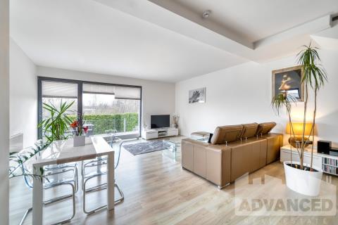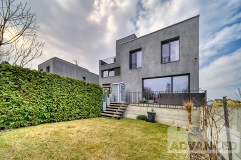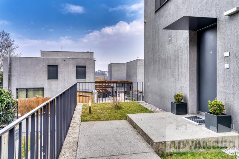 Jedinečný moderní mezonetový byt 4+kk situovaný jako polovina dvojdomu, o rozloze 119.7 m2 s terasou 9.35 m2 a soukromou zahrádkou 56.8 m2, s 2 prostornými parkovacími stáními v podzemní garáži a se sklepem 2.5 m2 v architektonicky oceněném rezidenčním projektu Origami.