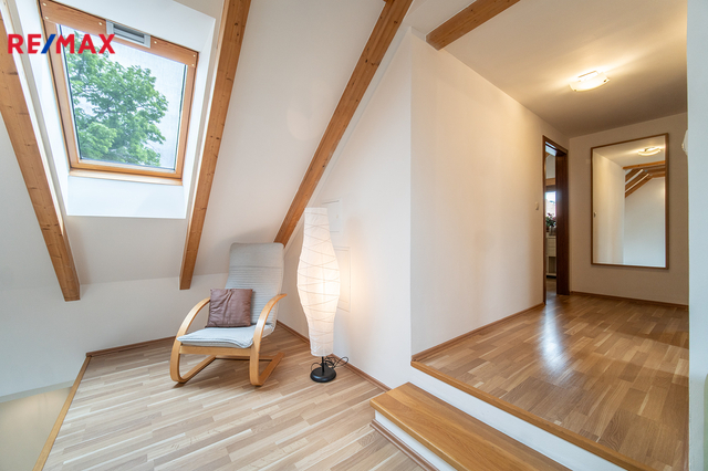 Ve výhradním zastoupení nabízím k prodeji prostorný (celková plocha 300 m2), dvougenerační rodinný dům v Praze 5 - Zličín. Pozemek 714 m2. Vzrostlá zahrada zavlažována vodou ze studny. Dostatek dalšího úložného prostoru ve zděné nebo dřevěné kůlně. Garáž pro 1 auto, parkovací místo pro 2 auta. 1300 m pěšky od metra Zličín, autobusem pouhých 6 min. 2500 m autem na Pražský okruh 1. NP - 96,65 m2 Samostatný, bezbariérový byt 2+1 (65,8 m2). Ideální jako bydlení pro prarodiče nebo dospívající děti. Nebo jako pasivní příjem při pronájmu bytu, kanceláře nebo salonu, který vám může splácet hypotéku. Byt je vytápěn podlahovým topením. K dispozici jsou i krbová kamna. V oknech jsou venkovní rolety, příprava na zabezpečovací systém, samostatný internet a podružný elektroměr. Garáž pro 1 vůz (16,06 m2) - zásuvka na 400 V. Garážová vrata i vjezdová brána je na dálkové ovládání. Technická místnost (14,79 m2) s toaletou přístupná z garáže a zahrady - lze využít i jako letní kuchyň. 2. NP - 110,8 m2 (byt 95,12 m2 + terasy 8,16 a 7,52 m2) Obývací pokoj s krbem a kuchyňskou linkou (34,04 m2) - výstup na terasu (7,52 m2) orientovanou na S a Z, z terasy se může vstoupit na zahradu Pokoj (21,07 m2) Pokoj (19,24 m2) Koupelna s vanou, dvěma umyvadly, toaletou a bidetem (7,39 m2) Druhá terasa (8,16 m2) orientována na S a V, přístupná z chodby 3. NP - 92,75 m2 (63,23 m2 + připravená půda pro další pokoj 29,52 m2) Pokoj se šatnou (30,21 m2) Koupelna se sprchovým koutem a WC (5,04 m2) Chodba (22,94 m2) Připravená půda pro další pokoj (29,52 m2) V celém domě je podlahové topení - kondenzační plynový kotel. Ohřev vody elektrickým bojlerem. Všechny 4 toalety v domě jsou napojeny na vodu ze studny. Příprava pro zabezpečovací systém. Vzrostlá zahrada s posezením a dřevěnou kůlnou. Příprava na automatické zavlažování. Podium se sprchou pro bazén nebo vířivku. Samostatná zděná kůlna. Voda z kopané studny pro zalévání zahrady. Zahrada i dům jsou připravené k okamžitému užívání bez dalších větších investic. Pro více informací a domluvení prohlídky mě neváhejte kontaktovat.
