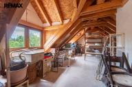 Obývací pokoj s krbem a kuchyňskou linkou (34,04 m2) - výstup na terasu (7,52 m2) orientovanou na S a Z, z terasy se může vstoupit na zahradu